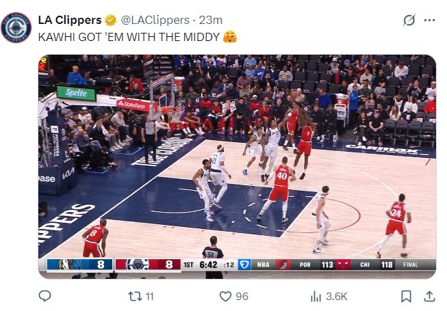 易边再战,伦纳德拿到6分已经上20+,哈登三节13分5助攻4篮板,鲍威尔三节14分,小卡25分钟20分6篮板,祖巴茨三节14分13篮板。三节打完比赛实际上就失去了悬念,因为泰伦卢直接上第二阵容了,波格丹连拿9分,尤班克斯连拿6分3篮板,两队换全第三阵容。
