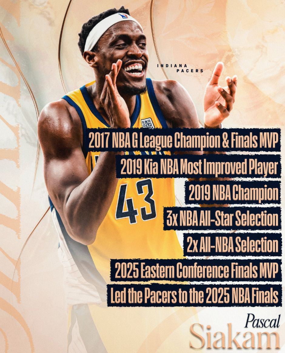 西亚卡姆一直以来都是被低估的,他是2017年G联赛的FMVP,他是2019年NBA的MIP与总冠军,他还三次入选全明星+2次最佳阵容,2025年拿到东决MVP带领进入总决赛。