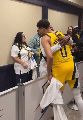 赛后哈利伯顿紧紧拥抱自己的老父亲,因为他这个赛季是被NBA球员评选的最被高估先生,季后赛哈利伯顿证明自己的价值。