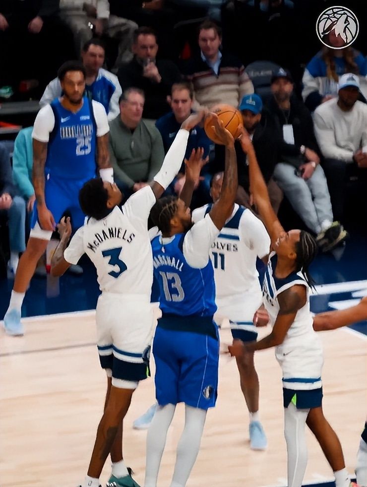 森林狼:爱德华兹13分4篮板,兰德尔12分6篮板,麦丹15分5篮板,迪温14分5篮板,戈贝尔15分9篮板,里德22分12篮板。