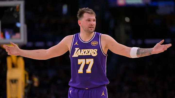 湖人首发阵容:文森特、八村塁、艾顿、里夫斯、东契奇。