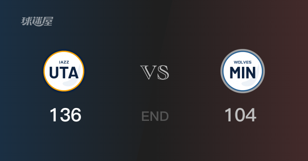 24直播网12月09日讯,2021-2022赛季NBA常规赛继续进行中,爵士客场挑战森林狼。本场比赛,经过刺激对决,最终爵士反客为主,整体表现不错,以136-104战胜森林狼。