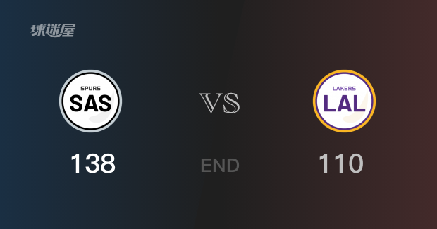 全场比赛,马刺球员迪奥普全场砍下30分;湖人球员詹姆斯全场砍下36分。全场结束,马刺以138-110战胜湖人。