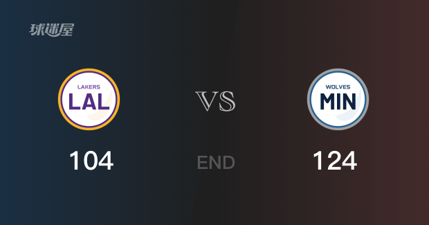 24直播网03月17日讯,2021-2022赛季NBA常规赛继续进行中,森林狼主场迎战湖人。本场比赛,经过刺激对决,最终森林狼凭借主场优势,整体表现出色,以124-104战胜湖人。