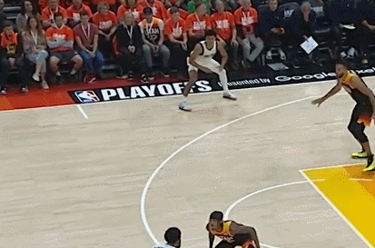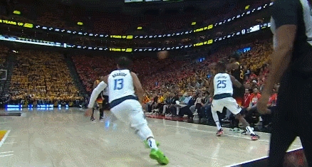 丁威迪外线持球吸引防守,约什-格林看戈贝尔上不来,直接干拔三分。