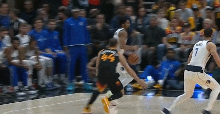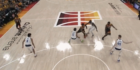 丁威迪在第三节面对戈贝尔的防守他直接高高跃起隔扣了戈贝尔,而且这个球戈贝尔打手犯规,丁威迪完成2+1。