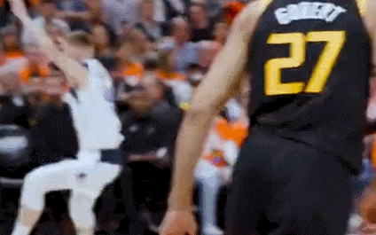 米切尔第三节终于找回了手感,也为戈贝尔赢回了颜面,他隔扣了贝尔坦斯。