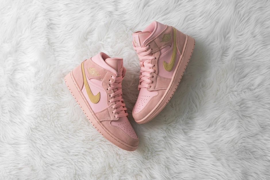 Air Jordan 1 Mid“Coral Gold”非常好看的珊瑚粉配上金钩超级可爱,粉嫩的少女心炸裂。