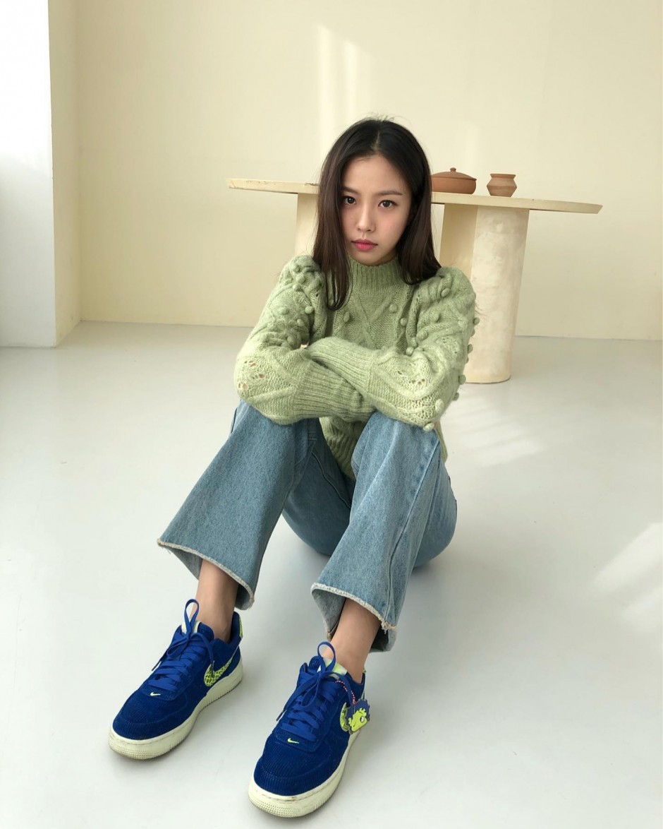 宝蓝色和蓝丝绸一样高贵气质,搭配荧光绿色蛇纹,细节满满,灯芯绒材质提高球鞋质感,非常高级。