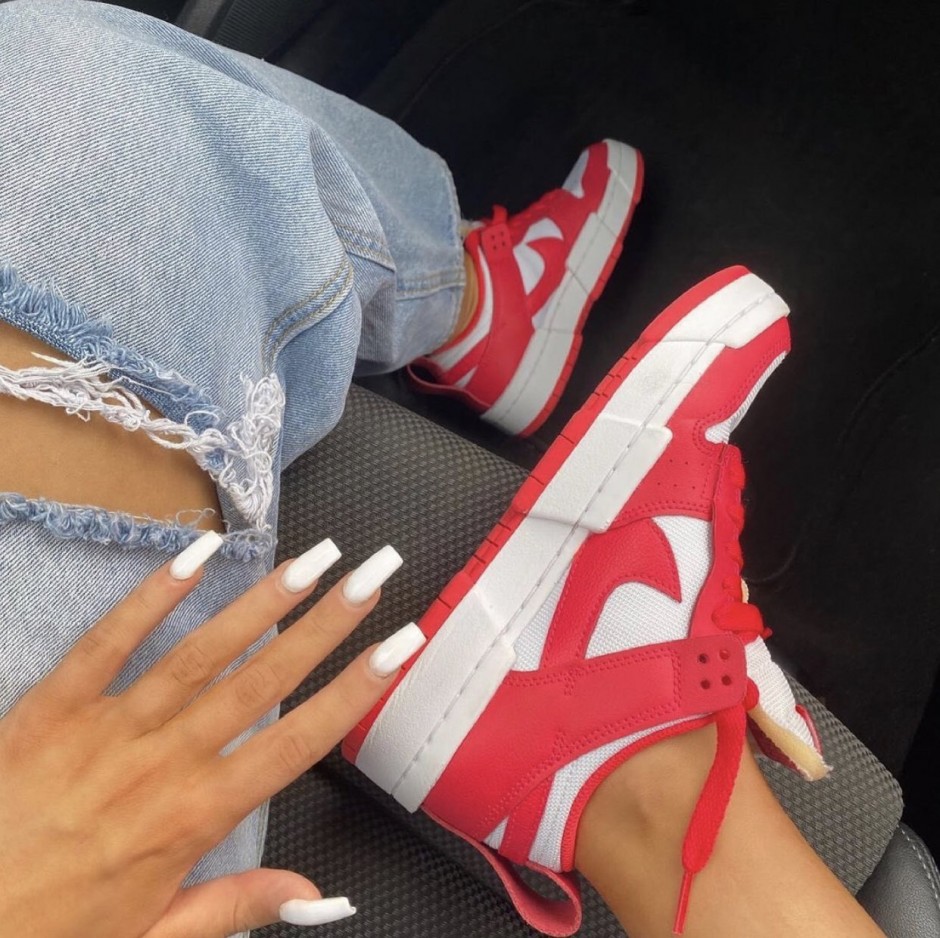 这款Nike Dunk Low Disrupt Siren Red鞋身由网眼面料制成,并配有皮革和 Nike Swoosh,鞋带孔固定处也以独特的分离式两层设计呈现,带来更多层次的视觉感受。