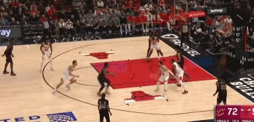 次节开局琼斯与米切尔对攻一记三分,奥科罗与莫布利接连暴扣打停公牛,德拉蒙德抛射命中,骑士一波8-0攻势扩大49-30领先19分优势。德拉季奇中投命中,奥斯曼上篮回敬,公牛打出一波6-2攻势追分,内托上篮命中。双方连续打铁不中,公牛4罚3中追分,勒维尔三分命中,公牛再追4分,艾伦中投命中,拉文三分命中。艾伦与拉文各得2分,奥斯曼与米切尔各中一记三分,拉文上篮命中,米切尔两罚全中,德罗赞再得2分,上半场骑士70-54领先公牛。前两节骑士三分14中10,米切尔18分7助攻引领骑士3人得分上双,公牛三分13中3,拉文17分与德罗赞9分。