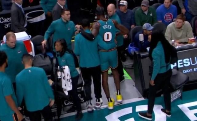 北京时间10月31日,活塞128-114击败勇士。18岁新秀杜伦被队友迪亚洛踩到脚踝,意外受伤,只能被搀扶离场。慢镜头显示,受伤一幕有些吓人,伤情预计比较严重。