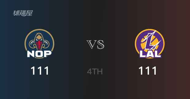 四节结束,湖人以111-111战平鹈鹕,加时赛再战。