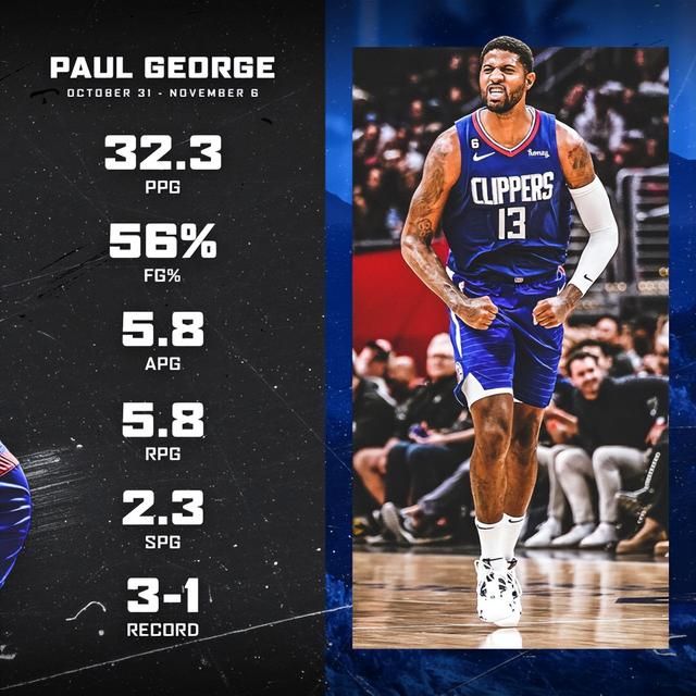 对火箭首战,乔治得到35分9篮板8助攻6抢断;对火箭次战,乔治得到28分4篮板5助攻;对马刺一战,乔治得到32分2篮板6助攻;对爵士一战,乔治轰下34分8篮板4助攻。目前,快船5胜5负。