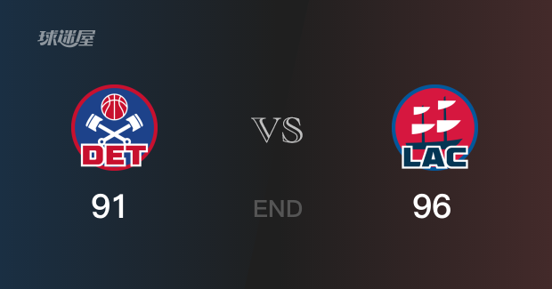 全场比赛,快船球员杰克逊全场砍下21分;活塞球员博格达诺维奇全场砍下26分。全场结束,快船以96-91战胜活塞。