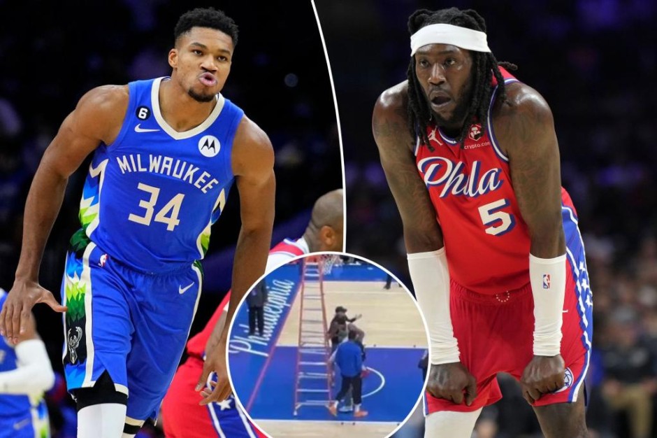 字母哥赛后解释:“我回到那里投篮,我面前有一个梯子, 我说,‘你能把梯子移开吗?他们说,‘不行。’”我说,'你们能把梯子移开吗?他们说,'不。我当时想,'伙计们,我还有两次罚球机会,你们能把梯子移开吗?他们说,‘不。’我把梯子推开,它卡住倒下了,就是这样。”