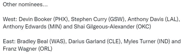 东西部获得周最佳提名的球员如下——