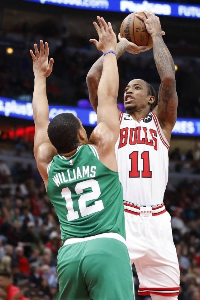 布罗格登在第四节开始后便投中一记三分球,在反击中打中2+1,帮助凯尔特人将分差缩小至8分。德罗赞三分命中,怀特在篮下制造防守犯规两罚全中,公牛重新将分差拉大至15分。布罗格登的连续三分球将分差再度缩小至8分,拉文超远三分命中,德罗赞晃开布罗格登防守轻松上篮拿到2分。塔图姆暴扣得手,拉文回过头来再度命中三分球,公牛逐渐掌控住了场上的局势。