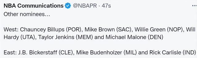 10-11月最佳主教练:马祖拉和蒙蒂-威廉姆斯
