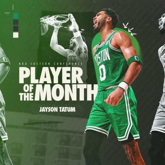 本赛季的第一次东部月最佳球员奖项属于凯尔特人的塔图姆。10-11月的比赛中,塔图姆场均31.6分7.8篮板4.5助攻,率领绿军打出18胜4负的联盟最佳战绩。绿军官方晒照祝贺塔图姆获得这一奖项。