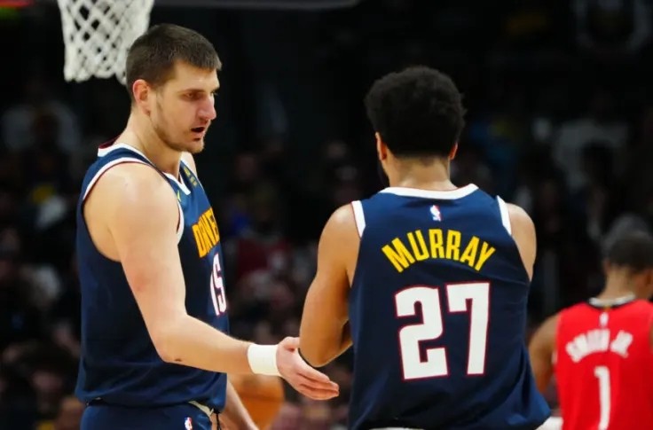 掘金方面:约基奇、穆雷、戈登、布鲁斯-布朗、波普
