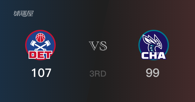 三节结束,活塞以107-99领先黄蜂8分,末节再战。