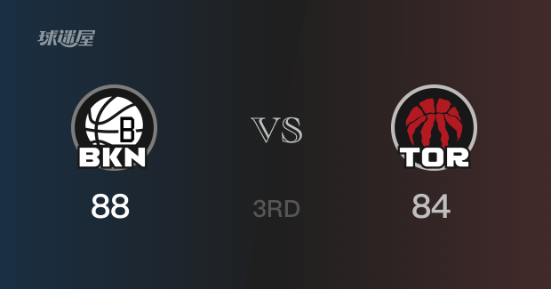 三节结束,篮网以88-84领先猛龙4分,末节再战。
