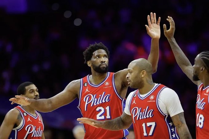 76人场均数据王:恩比德场均33.3分、恩比德场均9.9个篮板、哈登场均10.6次助攻;