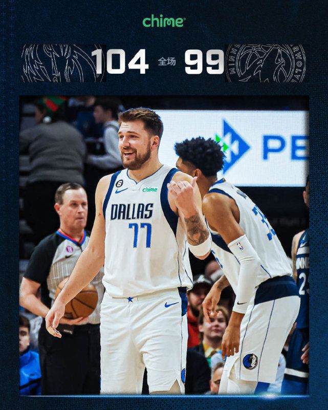 东契奇在本场比赛首发登场37分钟,奉献16中8的5成准星,其中外线三分5中1打铁,外加罚球9中8,得到25分9篮板10助攻的准三双数据。在森林狼最后时刻追到仅差3分时,东契奇关键两罚扩大5分优势奠定胜局,最终率队104-99险胜复仇森林狼。