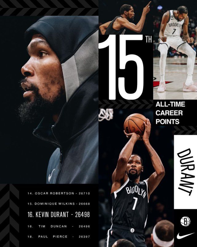 杜兰特生涯总得分超越邓肯 独占历史第15!两项命中率生涯新高