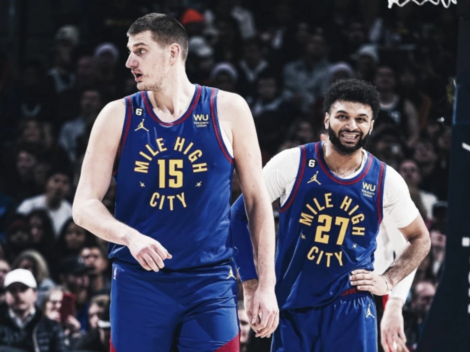掘金方面:波普、约基奇、穆雷、A-戈登、小波特