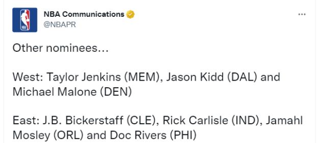 东部:骑士的比克斯塔夫、步行者的卡莱尔、魔术的莫斯利、76人的里弗斯