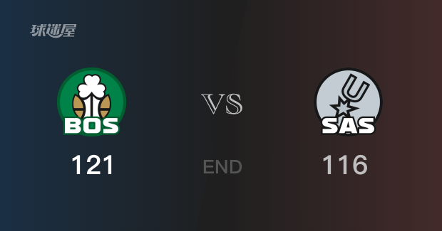 全场比赛结束,最终凯尔特人以121-116击败马刺,成为获胜方。凯尔特人球员塔图姆砍下全队最高34分,外加4篮板2助攻、布朗29分4篮板2助攻2抢断2盖帽、布罗格登23分2篮板7助攻,他们是凯尔特人队里得分最高的三名球员。