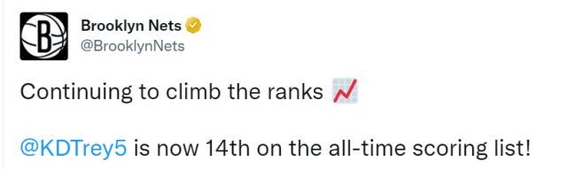 杜兰特总分超威尔金斯升至历史第14!今年有望进前十