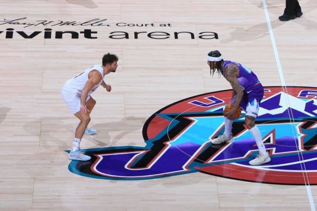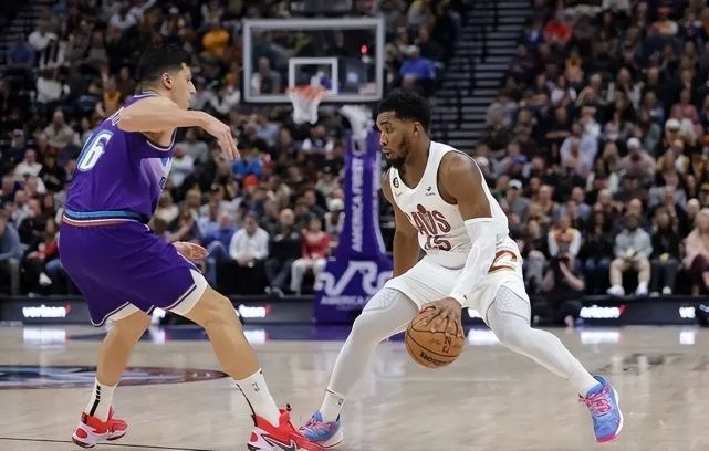 自从休赛期被交易到骑士之后,这是米切尔本赛季第一次重返盐湖城,他也受到了巨全体爵士球员和球迷的欢迎,米切尔也起身致意。或许是赛前的气氛太过友好,两队在开场之后的前三次出手都未能命中。米切尔接阿伦挡拆掩护后在三分线获得出手机会,用一记三分球向老东家展现出了自己的好状态。