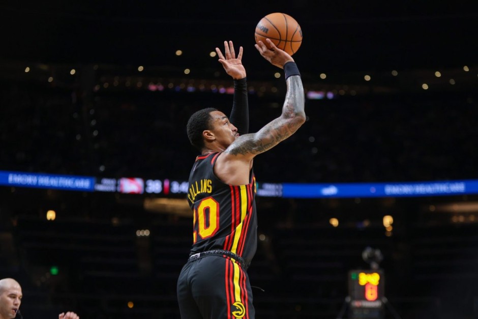 老鹰:特雷杨26分11助攻,奥孔古18分20篮板4助攻4盖帽,亨特25分,穆雷18分7篮板6助攻,科林斯7分8篮板。