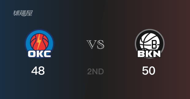 半场比分,篮网以50-48领先雷霆2分。