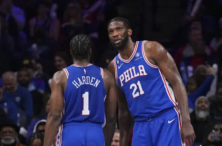 76人场均数据王:恩比德场均33.6分、恩比德场均9.8个篮板、哈登场均11.1次助攻;