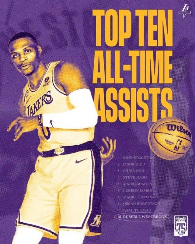 北京时间1月31日,在湖人客场对决篮网的焦点比赛,詹眉轮休让威少单核率队出战。威少在本场比赛半场送出5次助攻,生涯总助攻数已经提升到至少8967次,超越手套佩顿8966次,升至NBA历史第十位迎来里程碑,现役仅次于保罗与詹姆斯排在第3位。