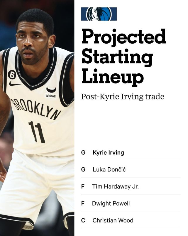 对于独行侠来说,这是一次豪赌,东契奇和欧文的搭档能不能获得成功,仍是未知数。美媒晒出了独行侠交易后的预计首发阵容。