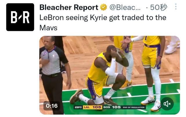 美媒第一时间调侃詹姆斯得知这一消息后的反应,晒出了詹姆斯在对凯尔特人一战中绝杀被漏吹犯规的抱怨。对于一心促成和欧文重聚的老詹来说,这确实令人扎心。