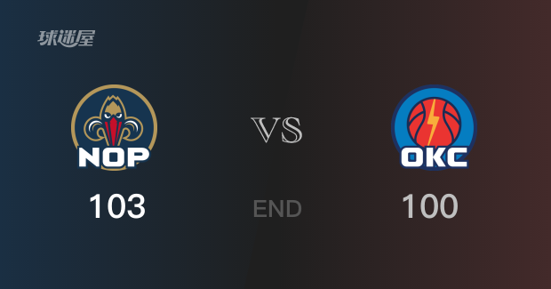 全场比赛,鹈鹕球员英格拉姆全场砍下34分;雷霆球员亚历山大全场砍下24分。全场结束,鹈鹕以103-100战胜雷霆。