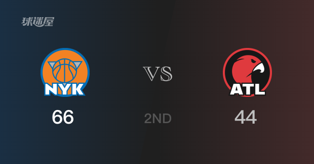 半场结束,尼克斯以66-44领先老鹰22分,第三节再战。