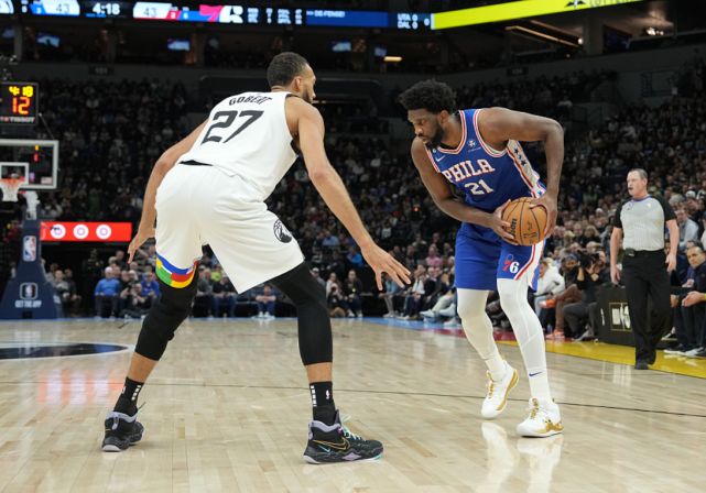 第三节是恩比德的showtime,鲁迪-戈贝尔、纳兹-里德两人被打得满地找牙,大帝是尽显进攻才华,三分球、篮下脚步、后仰中投、造犯规样样来,凭借大帝的表演费城很快拉开到20分以上,单节大帝11中6,三分2中2,罚球8中8拿下22分5篮板1盖帽,三节打完已经39+7+4+1+3的完美数据。