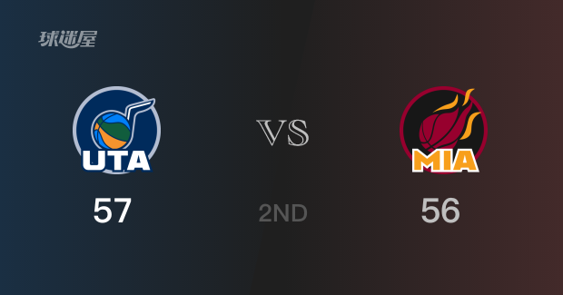 半场结束,爵士以57-56领先热火1分。