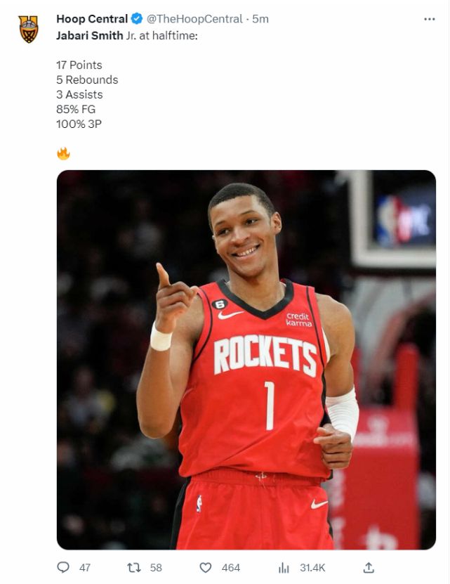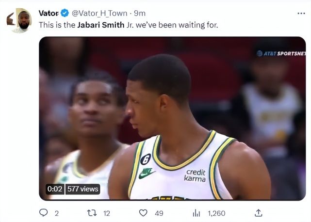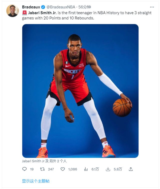 火箭数据分析师写道:当火箭用第三顺位选中小贾巴里-史密斯时就期待看到他这样的表现。