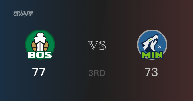 三节结束,凯尔特人以77-73领先森林狼4分。