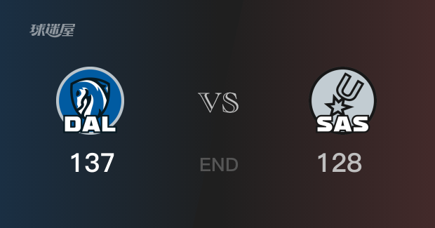 全场比赛结束,最终独行侠以137-128击败马刺,成为获胜方。独行侠球员伍德砍下全队最高28分,外加13篮板3助攻1盖帽、鲍威尔22分8篮板2助攻、哈迪22分6篮板4助攻,他们是独行侠队里得分最高的三名球员。