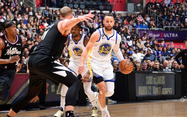 在次节比赛,库里一度被快船限制外线投篮,但在上半场结束前1分钟,库里先是外线迎着防守命中一记三分,随后库里再中一记三分,上半场已经命中4记三分轰下20分,成为前两节比赛两队得分最高的球员。