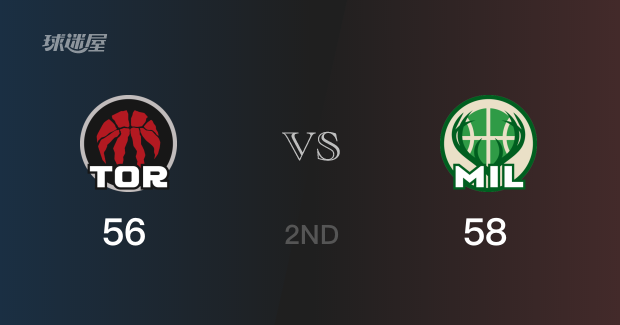 半场战罢,雄鹿以58-56领先猛龙2分。